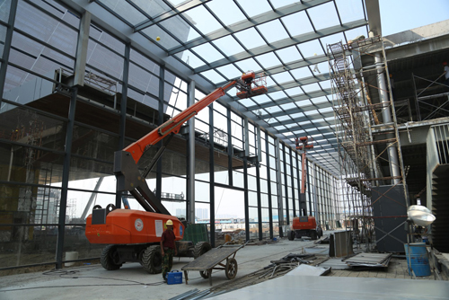 本次长沙国际会展中心一共动用了20多台鼎力高空作业设备,其中包括工作高度28米的GTBZ28SI、24米的GTBZ24S和20米的GTBZ20SI高空作业平台,主要用于会展中心钢结构焊接,柱体喷涂,机电安装,管道管线、电路电线的铺设,内部精装修,外围配套工程施工等日常工作。