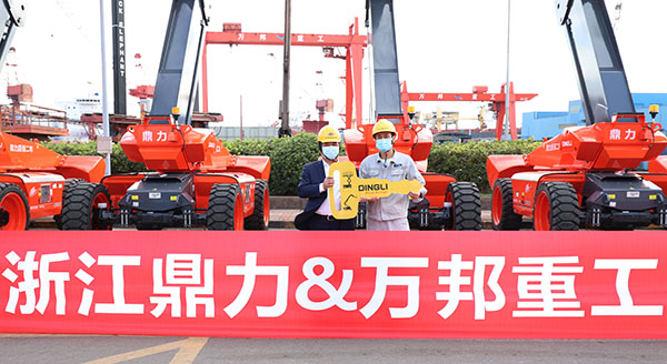 近日,鼎力10台34米臂式浩浩荡荡抵达万邦重工(舟山)有限公司,一抹亮眼的鼎力“红”顺利完成现场交机 糖心视频在线,双方正式迈出战略合作后的重要一步.