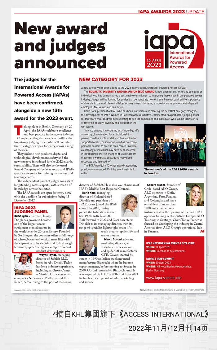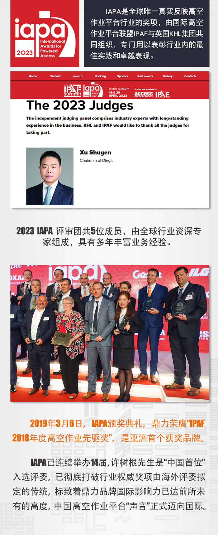 【摘要】鼎力董事长许树根先生入选IAPA评审团,为中国首位入选人员