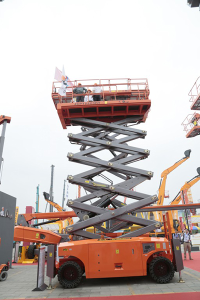浙江鼎力作为智能高空作业平台生产企业,已经连续多年出席BICES。每一次参展都会引领行业发展新风向,让行业为之震动;每一件产品亮相,都受到各大采购商、租赁商的青睐。本次更是携旗下10余款高、精、尖精品倾力出击。其中最引人注目的要数首次亮相的JCPT2223RT自行走剪叉式高空作业平台。该款产品是目前业内工作高度高、自动延伸平台长、载重量大、稳定性好的高空作业平台,并且已经通过了全球最严格的德国TUV莱茵和意大利ECM的欧洲CE安全认证。