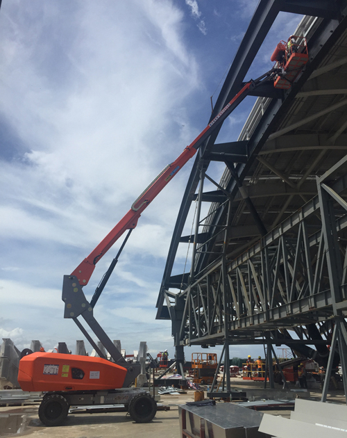 在施工现场我们发现,浙江鼎力是一家自主国产品牌的智能高空作业厂家。工作人员站在平稳升上的智能高空作业平台上,专心致志地忙碌着,因为在浙江鼎力高空作业平台的守护下,他们拥有了更加安全、高效、快捷的工作环境。正如施工方一位工作人员表示:选择浙江鼎力,就是选择了一个可靠的合作伙伴,对我们加速完成工程进度非常的给力,浙江鼎力不愧是中国高空作业平台的大型企业之一。
