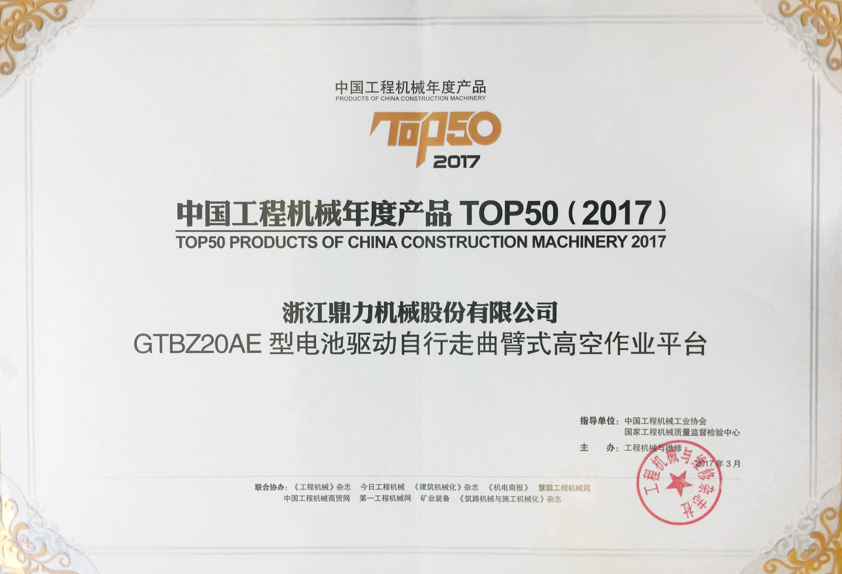 鼎力GTBZ20AE智能曲臂式高空作业平台(电动)凭借领先的技术优势和产品性能,获得科技专家、行业媒体的一致认可,摘得年度产品TOP50奖。