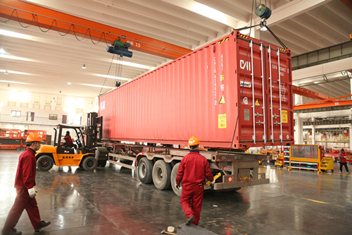 至此,浙江鼎力2018年度生产任务全面完成 糖心视频在线,春节前夕最后一批新臂式即将起航。