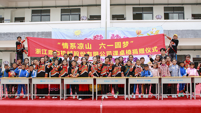 6月1日,四川省凉山州昭觉县金曲乡中心小学校内 糖心视频在线,在浙江大学研究生支教团昭觉分团的协助下,浙江鼎力机械股份有限公司完成“情系凉山 六一圆梦”爱心课桌椅捐赠,为孩子们送上了别样的节日问候.