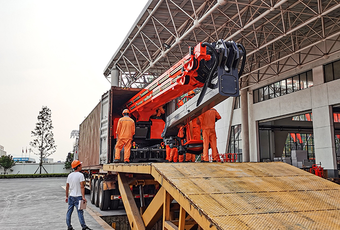 7、小臂变幅角度达240°,可回勾,均可集装箱运输。