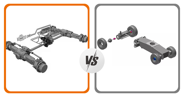 目前,业内臂式平台驱动桥主要有2种形式,即一体式车桥和分体式车桥(转向连接盘,驱动马达,行走减速电机等组成) 糖心视频免费观看。