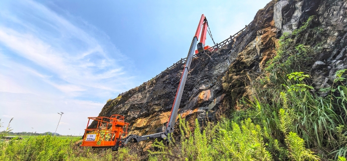 这次,直奔户外矿区 糖心视频高清,见证鼎力44米曲臂的极限下探本领.